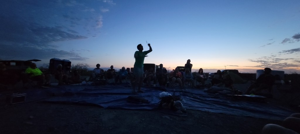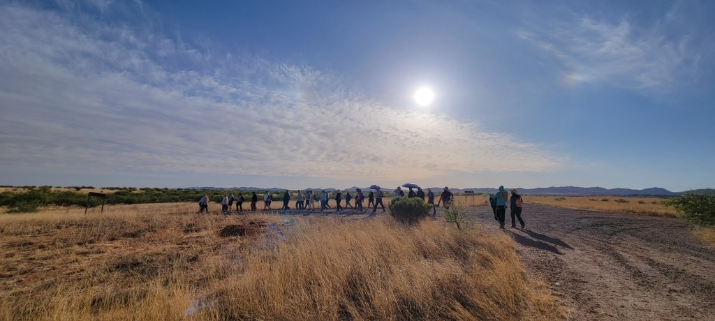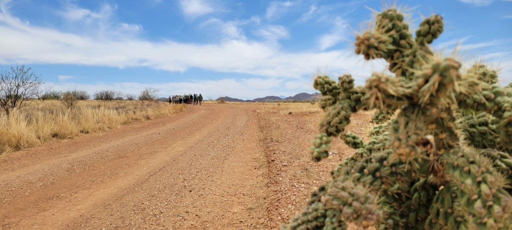 I learned many Spanish words during the walk. I learned that those tall cacti you see on postcards from Arizona are called Saguaro. I learned that some smaller cacti are called jumping cholla because the thorns are so loosely attached to the cacti that they seem to jump off as you walk by and hook into your skin. The safety team had to continuously walk with combs to brush these cholla off unfortunate walkers. I learned that espinas are the thorns that kept lodging into the bottom of my sandals and poking through to my feet. Speaking of feet, I learned that ampolla is the Spanish word for blister that walkers kept using over and over. Ironically, the only blister I got during the week was on my hand while digging a hole for the biodegradable bags carrying the community’s human waste (that’s a story for another time).